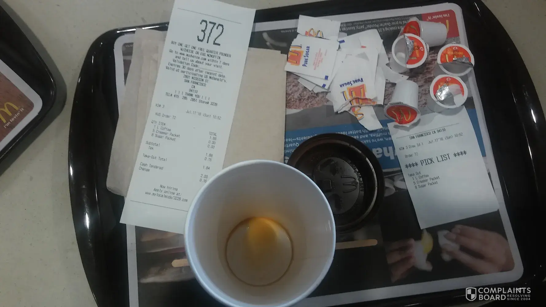 The McDonald's located 2801 Mission St. San Francisco on July 17, 2016, Store # 3228, Telephone number [protected], at 11:00 am pacific time refused to refill my coffee.