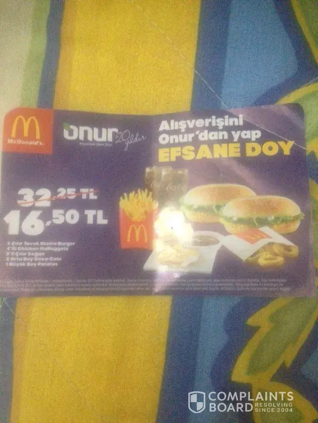 Onur supermarket manager advised that the deal with MCD is by the vouchers only and our vouchers are valid till 5th of August and he said that he will make a complaint in that branch, we went back again to the branch and told them that there is no need for the invoice