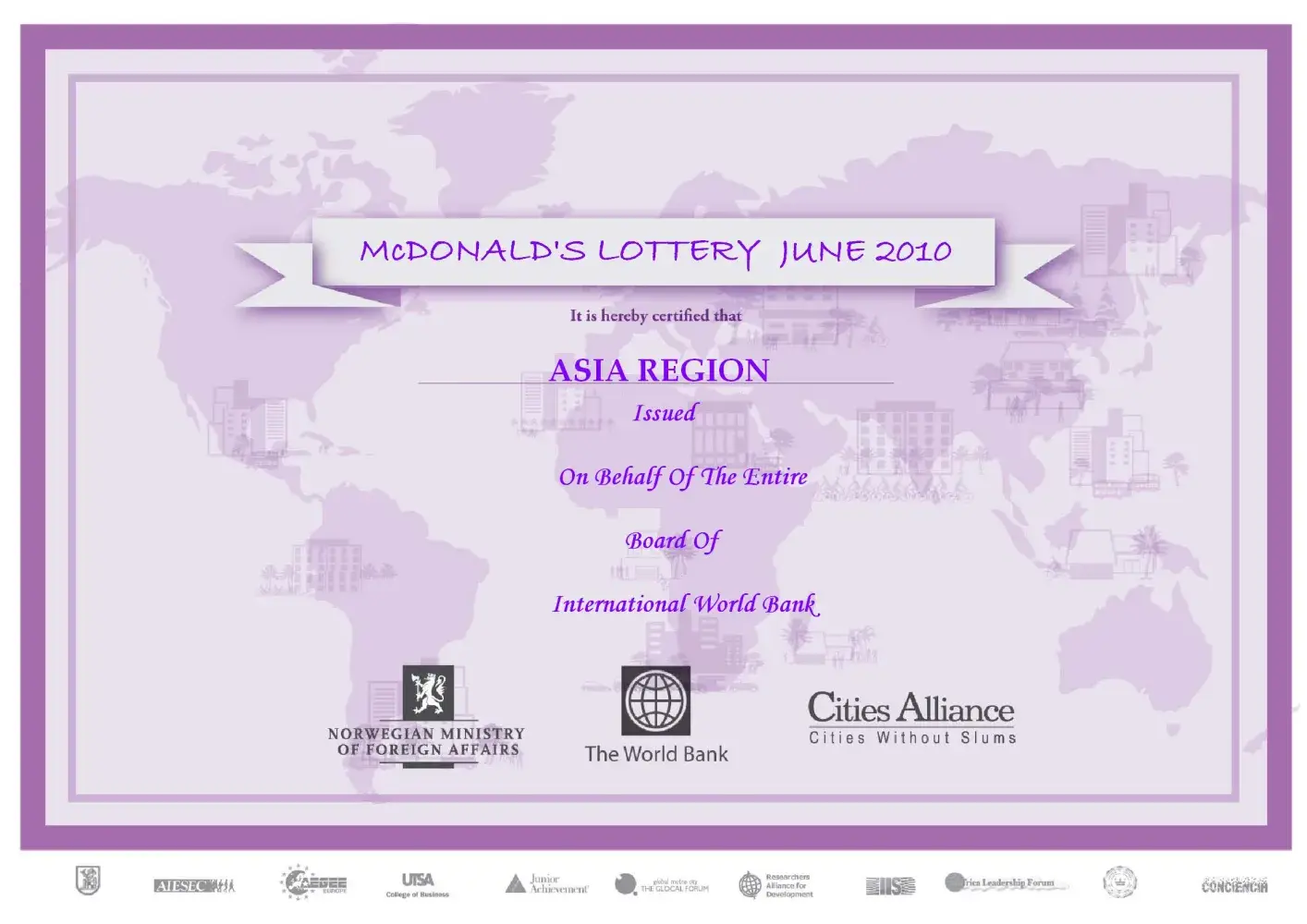Congratulations from me and members of staff of the THE McDonald's Lottery.