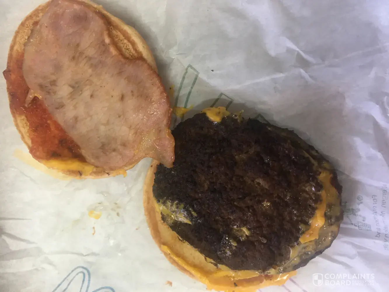 Brought a double cheese and bacon burger the meat was black and the bacon was grey .🤢