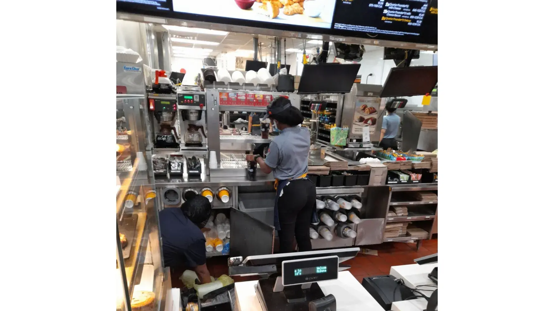 She reeked of marijuana and was in slow motion and did not give me my receipt. My coffee from the woman from the front with braids had something floating in it and she was non personable and made no eye contact. Just a mean lady hatin gher job handing me my morning tainted coffee. The day before I bought an ice tea and I saw that woman with braids put ice from counter into my drink as she filled up cup. I could see through window. She does nto care and I do not know why mc donalds hires people like this. Your company sales would go up if you promoted higher wages for high quality employees. There are trade schools always seeking jobs for culinary art students. Thinking about not going there anymore due to this and I am a daily customer. Tired of the indirect suttle abuse like I am sorry I was born white it seems their is a racial hate vibe at this location does not mean my food should suffer because your perspective is messed up. I had to speak my mind because no one cares. DOnt get me started as to why I never order burgers anymore. Fries are a hit or miss and nuggets too. Always cold and stale . What is wrong with people!?! You wonder why your sales are so low. Machines are down told on a hot summer day when I went there for icecream. Really are they because I am not sure why mcdonalds corporation would allow that to be so for a 48 time period. Just saying. The place is dirty inside and no one cares. Literally had to pour my burnt old thick tainted coffee out the window! WHYME?I said nothing and I was polite.