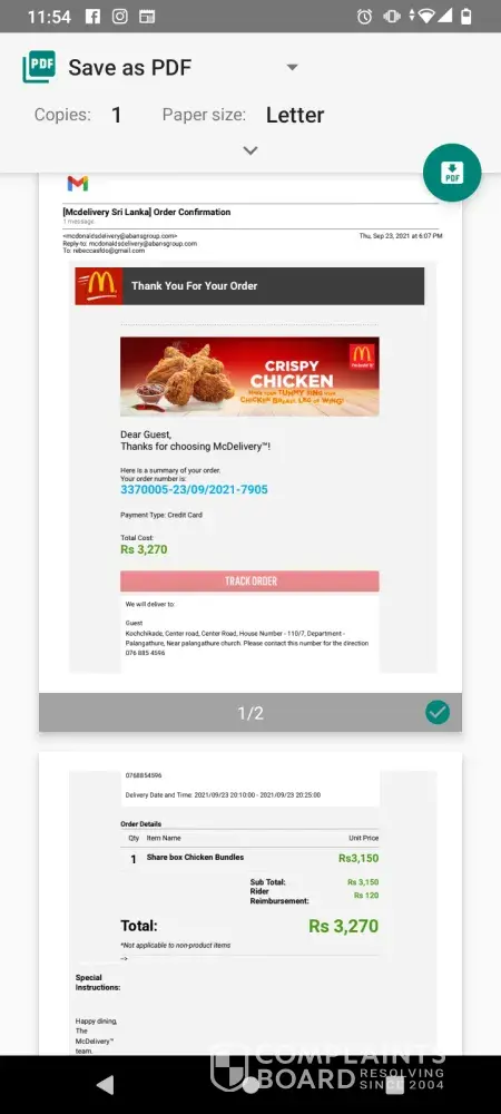 On 01st of October, we placed an online order through your website. We did the payment, but at that moment, the website crashed and we didn't receive an order number or any information to confirm our order. Yet, we received a message from the bank saying our payment was authorized. The amount of Rs. 3, 940.00/- was debited from my credit card (ending xx0411) at 21.30pm on 1st Oct21. We called your hotline number [protected]) to inform you of the matter, and we were told to wait for 20 minutes to receive our order. Now two days passed, and still we didn't receive what we have ordered or not refund our money.