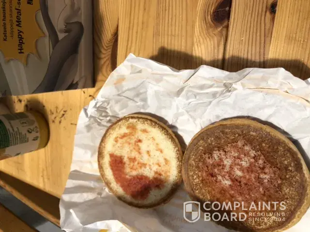 My Granddaughter and I ordered a four-piece Happy meal for her and I had two Cheeseburgers no Pickle, extra Ketchup. The Cheeseburgers had a crunch to them then realized there was black stuff on the outside of the burgers bun and the temperature was room temperature so I opened the burger to find it was all black and disgusting looking { both of them } no extra ketchup but I was so hungry I tried eating them any way that turned out to be a big mistake because I got sick and have been up all night so far recovering. Also Tried a French fry from her Happy meal which tasted like cardboard and room temperature and asked her why she was not eating her meal she said it did not taste right. Can't blame her that's for sure. This is not the first time we have had a problem with the food here. I want my money back and in the future, if I get sick from eating there again I will take legal action. It's really sad we half to go through this just for eating at this McDonalds. On Maple Street in Lebanon PA. So mad yo. Around 4:00 pm on October 8, 2021. [protected] My number is [protected]