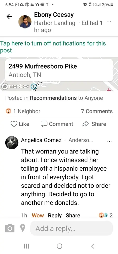 On Wednesday May 12th, at approximately 2:10pm, I found myself at the McDonald's drive-thru to get my daughter a snack, after picking her up from school. When we arrived, I heard a muffled voice asking may I take your order. Without even thinking, I assumed it was my usual "friend" over the speaker so I cheerfully responded, "Hola Chica! Uno momento, por favor!" I immediately got a nasty response saying "Ah, Un! No! I'm not takin no orders in that language! We don't speak Spanish! Order in English!" So I'm thinking maybe I shouldn't have assumed it was her. Embarrassed, I said hold please. My oldest daughter called while the cashier began to take other orders. I told her what happend and she informed me that this McDonald's is known for being rude to it's customers. I had no idea. By the time my youngest daughter figured out what she wanted, I had 3 cars behind me and no one else was in the other lane. I was waiting patiently but the cashier never came back. I said "hello" twice and "excuse me" through the speaker once. After that last hello, she rudely responded with: "YOU GONE HAVE TO WAIT! I'M TAKIN' OTHA ORDAS!" I saw that I was the only car at a drive-thru speaker and was like OMG. I didn't even want to order after that because I didn't want them to do something to my daughter's food. I had to take her somewhere else to eat. I told my daughter to call them several times while we were leaving but someone kept hanging up on us after answering. I've never been treated so awful in my life. If you guys find yourself at the McDonald's at 2499 Murfreesboro Pike Nashville, TN 37217, please watch out for the ghetto black woman in drive-thru with black/blue braids, long fake nails, and thick, false eyelashes. She is a force to be reckoned with. Someone like her should not be allowed to work with the public at all. She has zero customer service skills. If McDonald's insist on employing individuals like this, then please keep them away from the public. There are plenty of other duties people like her can fulfill rather than allowing her and people like herself to make direct contact with the public. I just really wish my daughter didn't have to witness that madness. It was embarrassing to say the least. A few hours after the incident, I was informed that the same person that was rude to me was caught yelling at a hispanic fellow work colleague. It was so bad that the customer left without ordering. Just thought that this should be known.