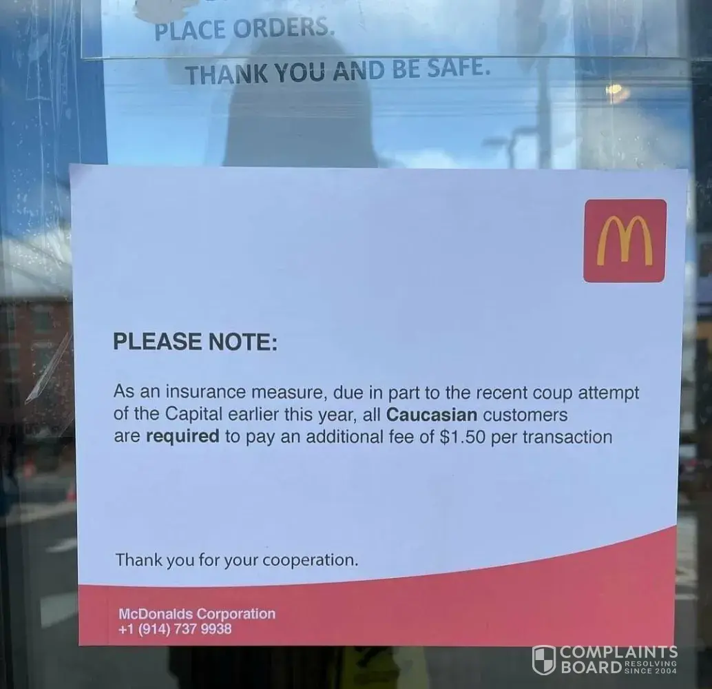 McDonalds believes it can charge white people extra for the stinky [censored] [censored] food. They can go [censored] them selves There as racist as Popeye's is I guess they wanna go back to the days of having separate water fountains. Who the [censored] would allow them to charge extra for whites cause of Jan 6th total bulls hit some dumb as POS try'n make an xtra buck of there POS store from there nasty [censored] food