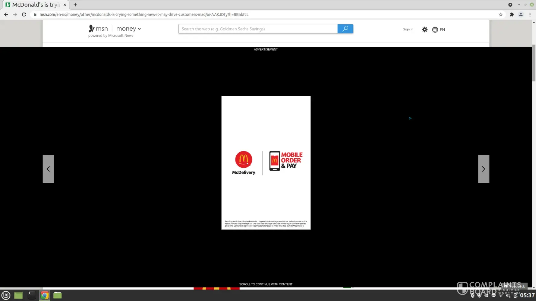 I have been getting this ad practically every 1/2 hour when I try to read MSN news. It takes over the entire screen and I can't get rid of it without switching to another site. NO, scrolling doesn't get rid of it.