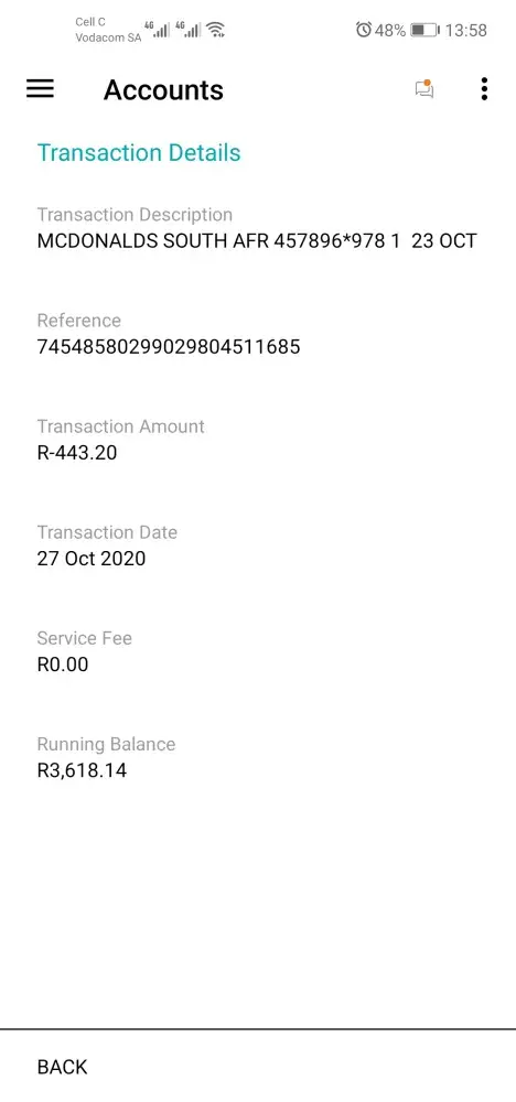 I placed and paid for and online order but didn't receive my order. Phoned and went into McDonald's on the bluff to retrieve my order, was told the order did not reflect on their side. Showed manager on duty my payment message was told they still could not give me my order. DISGUSTED that I was robbed of R443. 20 and Mcdonald refuses to reimburse me