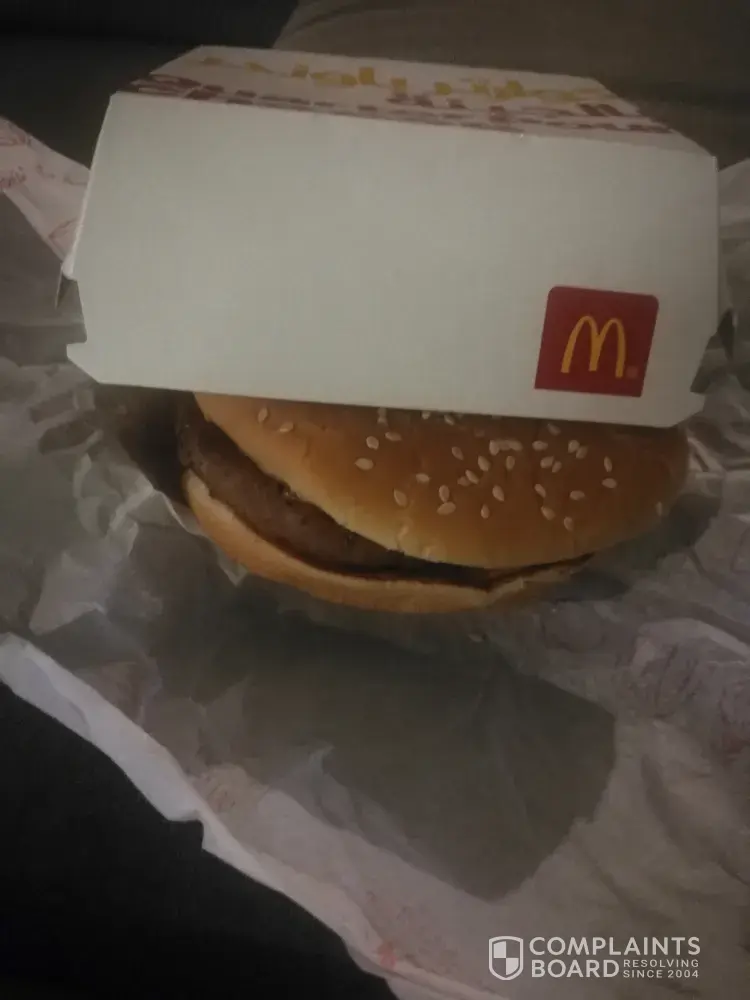 I'm sick of ordering food and have to pull over for 25-30 minutes to get food and my order all wrong or I didn't get what I paid for this the 3rd time 1st time I ordered a 4 for 4 got all my food but nuggets 2nd time I ordered a quarter pounder no onion got a raw meat patty the burger was red inside and the fries cold and had to take a tea which I told them...