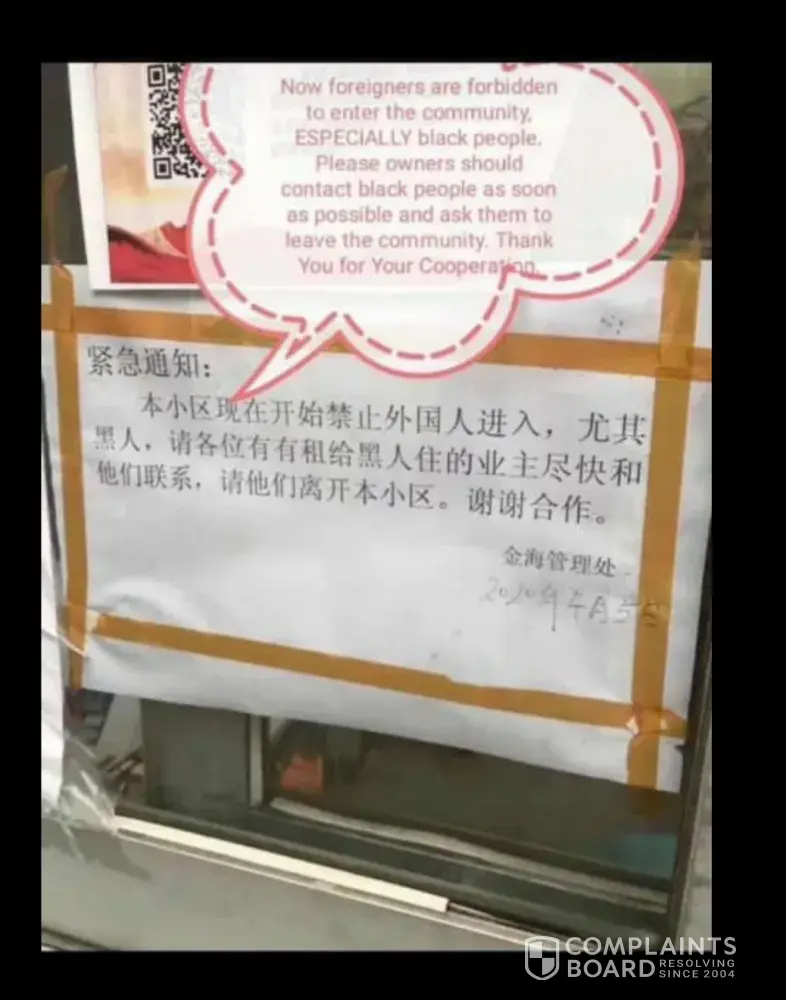 In China, the Chinese people are openly discriminating against black people in your restaurants refusing to serve black people.