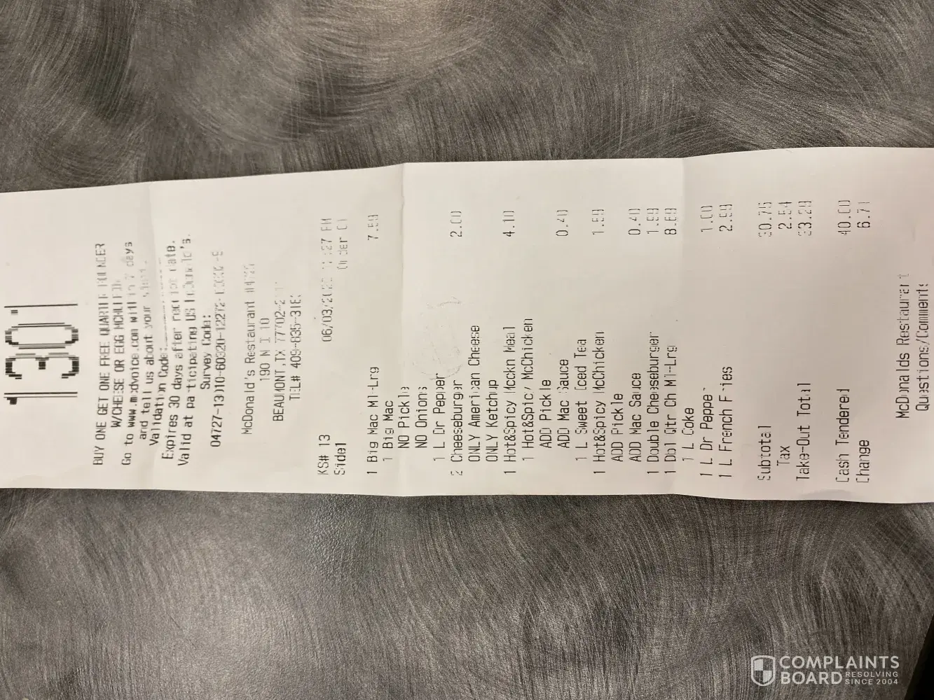 Read full complaintMcDonalds 1339 Broad Street Bloomfield NJ 07003