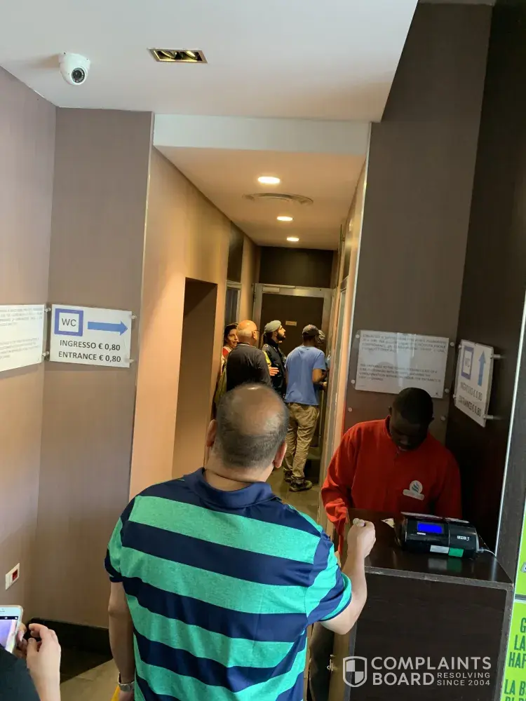 A terrifying experience happened to me in a McDonald's restaurant. On Saturday October 12, 2019 I was in the restroom of your McDonald's at the Florence, Italy train station. I was in this bathroom with 2 other women when the pocket door to the washing area would not slide back open and we got trapped! For 45 minutes we were locked in the 5'x5 1/2' area while inept company workers tried to get the door open even though they were not doing the correct things to get the door to slide back open.
