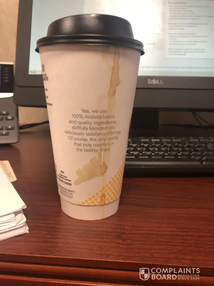 I am a fan of McDonalds coffee! I plan mornings around making time to stop for coffee. Some time ago the cups were changed... and since leak horribly. I constantly find stains on my clothing, in my car and on my desk or meeting table. In meetings this is embarrassing and quite a nuisance. It is extremely frustrating to wrap a napkin around the rim of the cup just to protect my clothing from the spillage. I am appealing to you as a coffee lover to quickly do something with the cups. This is definitely a game changer for me! If not corrected, I will not patronize McDonalds coffee any longer.