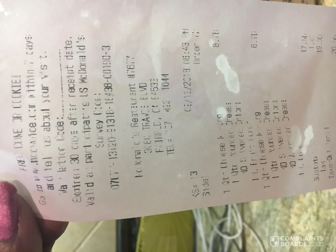 This morning I purchased items from McDonalds on Cross Creek and Bruce B. Downs in Tampa, FL.
