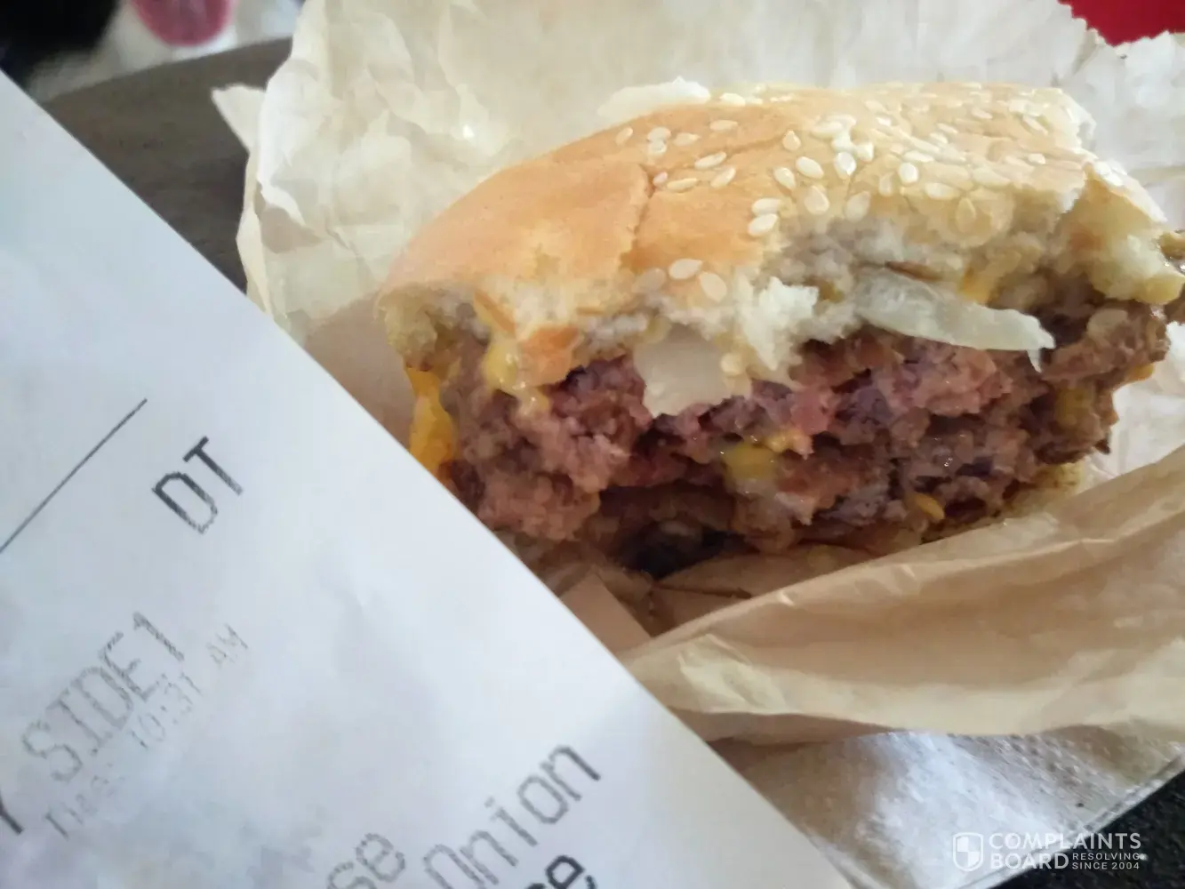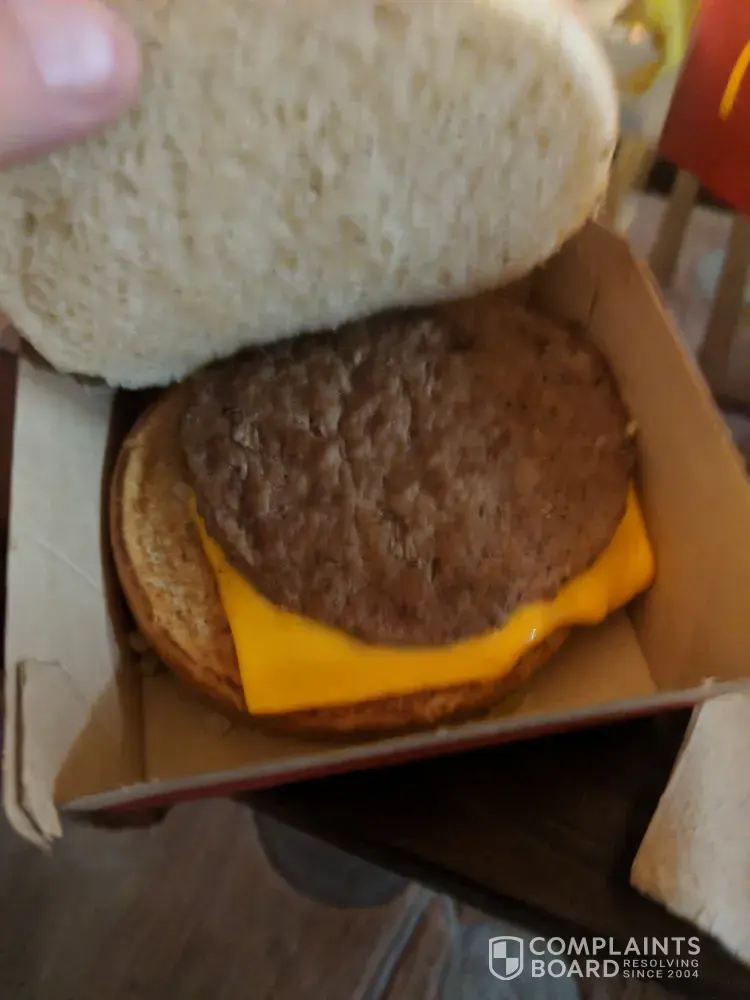 I ordered a #3 in the drive thru at 10:30am today. When I got home about 5 mins later I opened the bag and was dissapointed with the brown soggy french fries. How they were soggy at start of lunch service baffles me but OK... Then I started to eat my ddble quarter pounder while trying to work so I really didn't notice the meat was raw until several bites in. I hope to god I don't get sick!