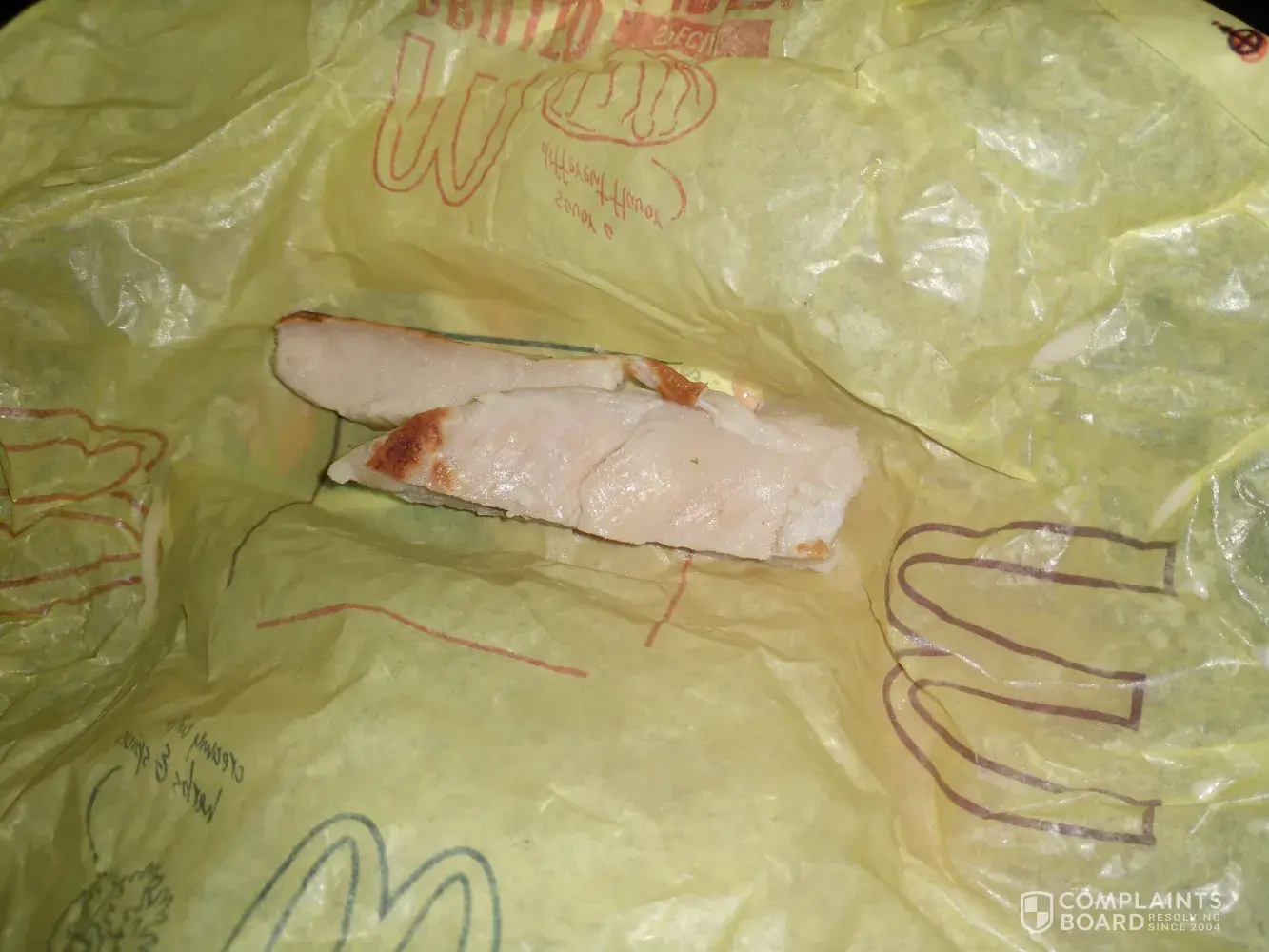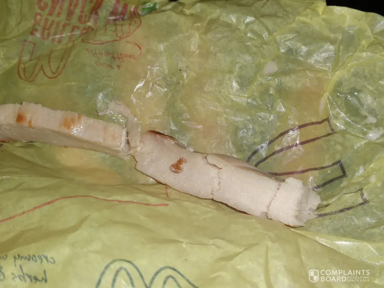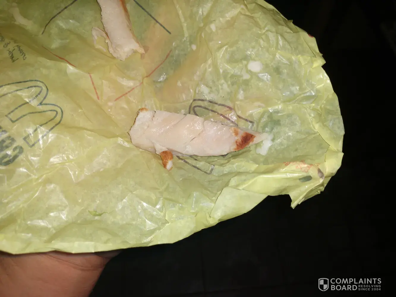 At that point I open up the rap and say this is horrible as well he says what's the problem sir I asked him look at this is this how you train someone to take to make a chicken wrap, he says no sir I'll make you a new one I said I really don't feel comfortable going with that selection anymore I'd rather have a fried chicken wrap he says well I could do both I said whatever I just want some food and I don't want that junk anymore..