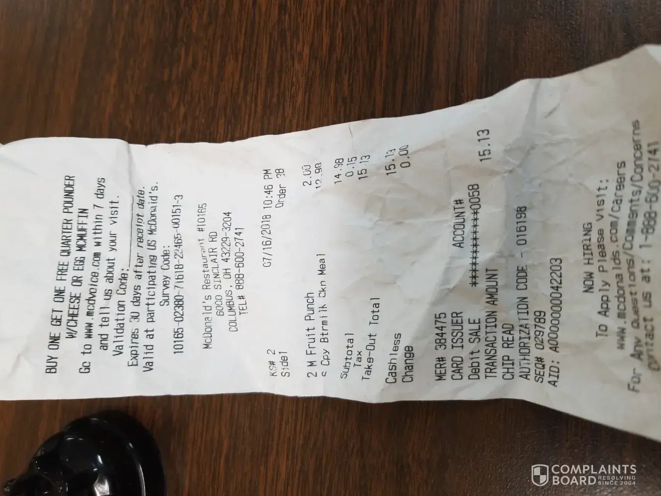 This is why you check your order when they give you the bag. You only had 3 things! One. Two. Three. As fast as you read my post, you could have checked your order...
