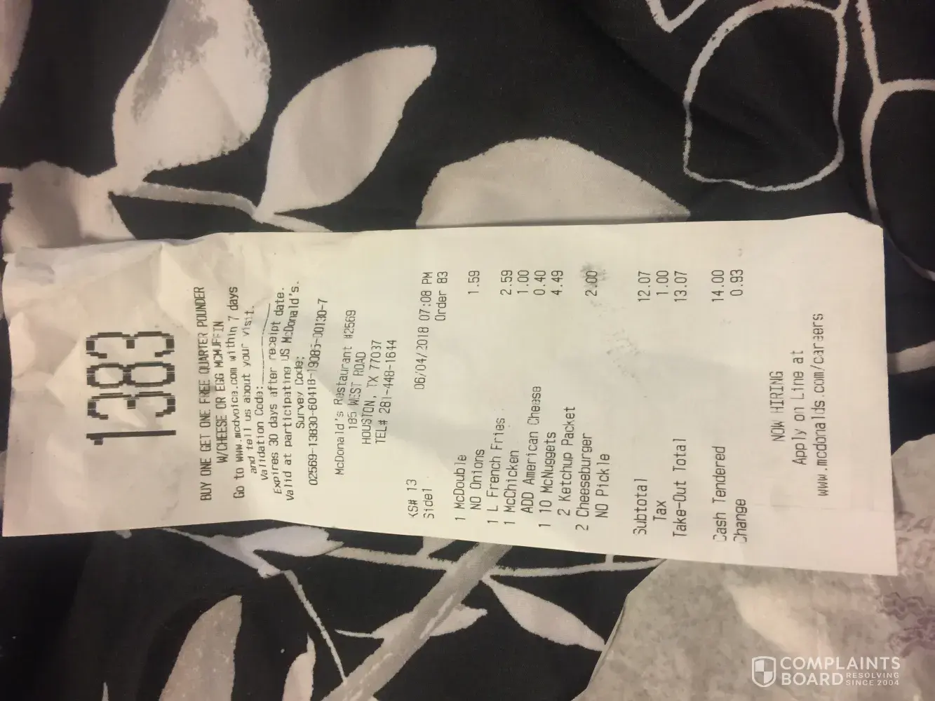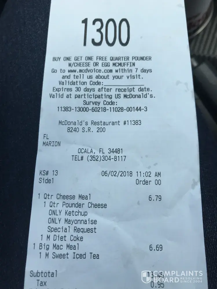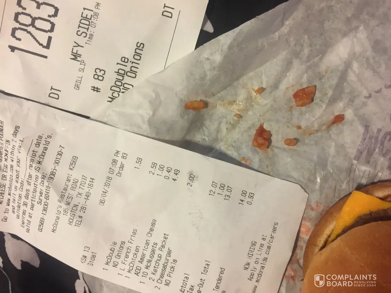 Please get back to me. I let the store make a copy of the receipt, looked at the yucky pictures with the maggots on the burgers and looked at the food left over I brought back for them to see.