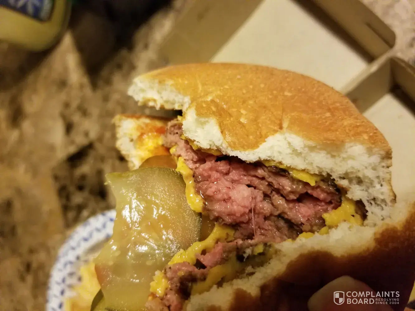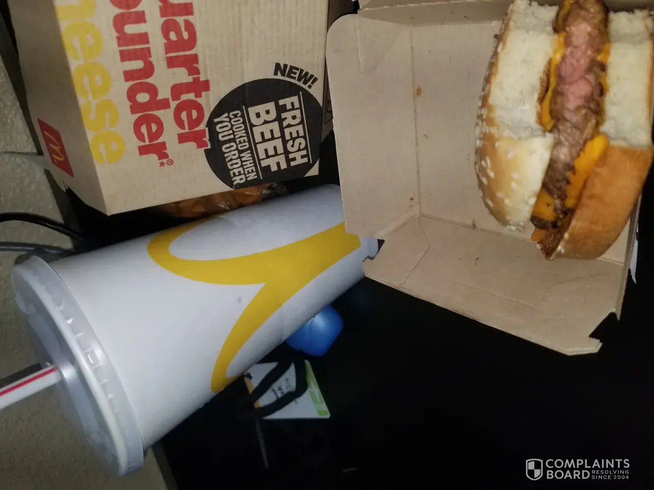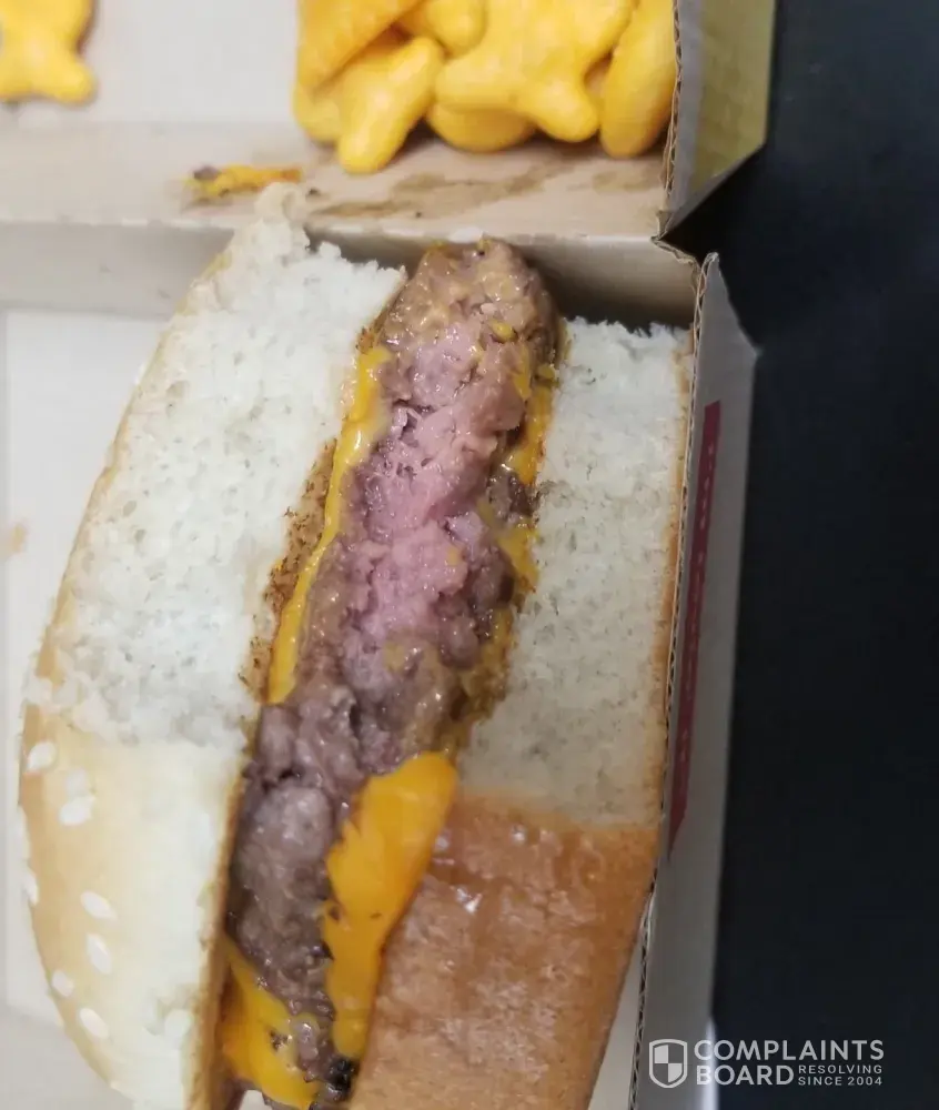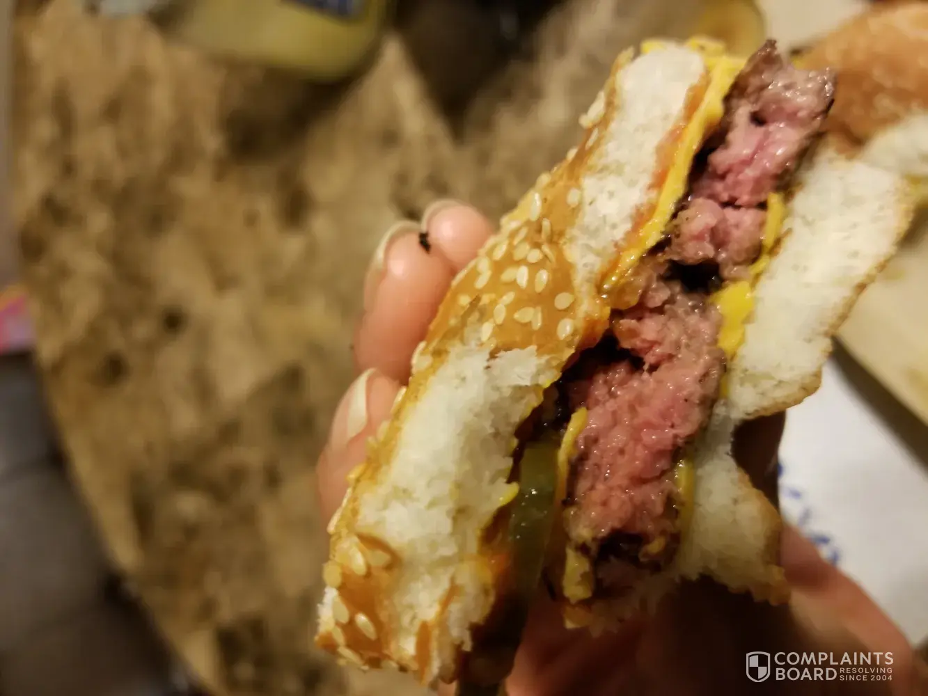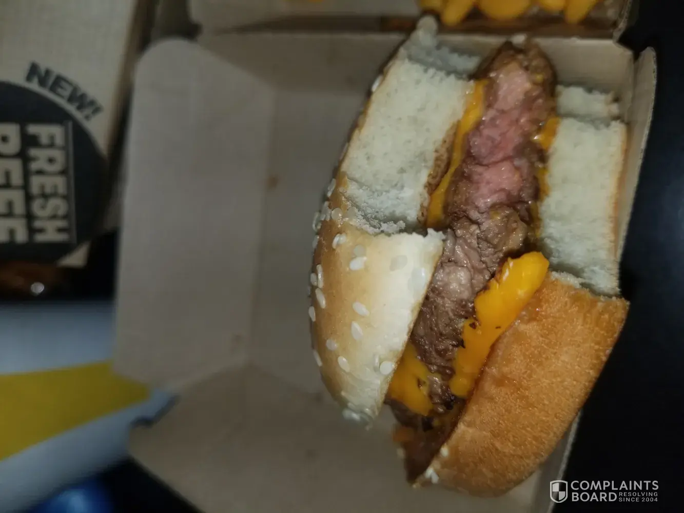 This is the first and last time ill ever purcharge a quarter pounder, i didnt think much of it but when i put the burger down to get a sip of my drink i noticed the burger is pink! I cant stand half cooked meat, i need it to be fully cooked no matter what it is. This is disgusting, not only did i waste $5 on this not fully cooked burger but now i have a chance of getting food poisoning, I did purchase two of the same burgers but no way am i touching the other one so i wasted a total of $10 and some change.