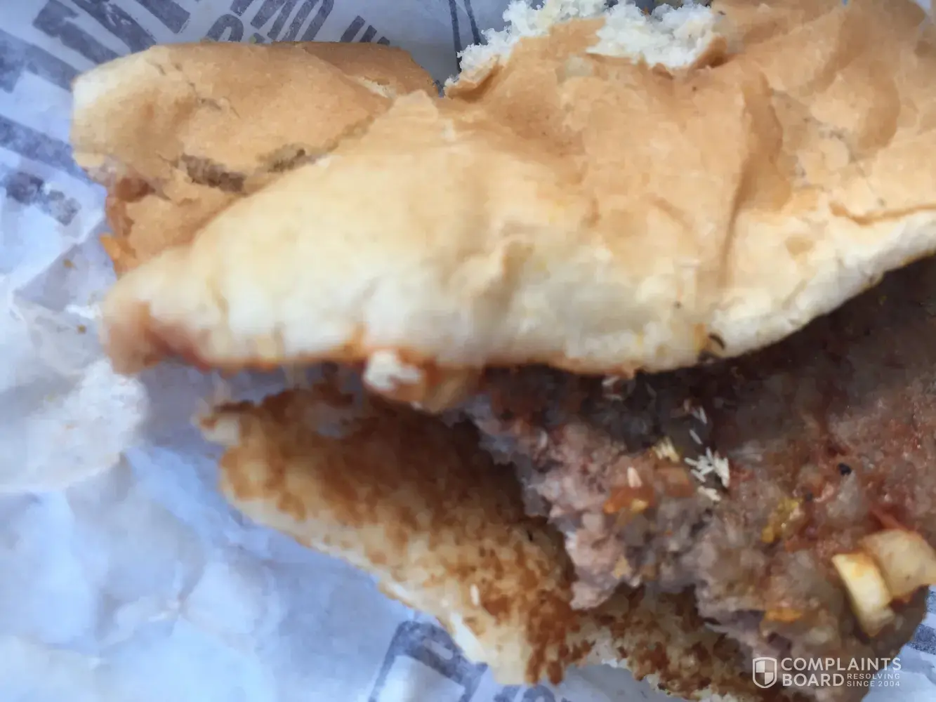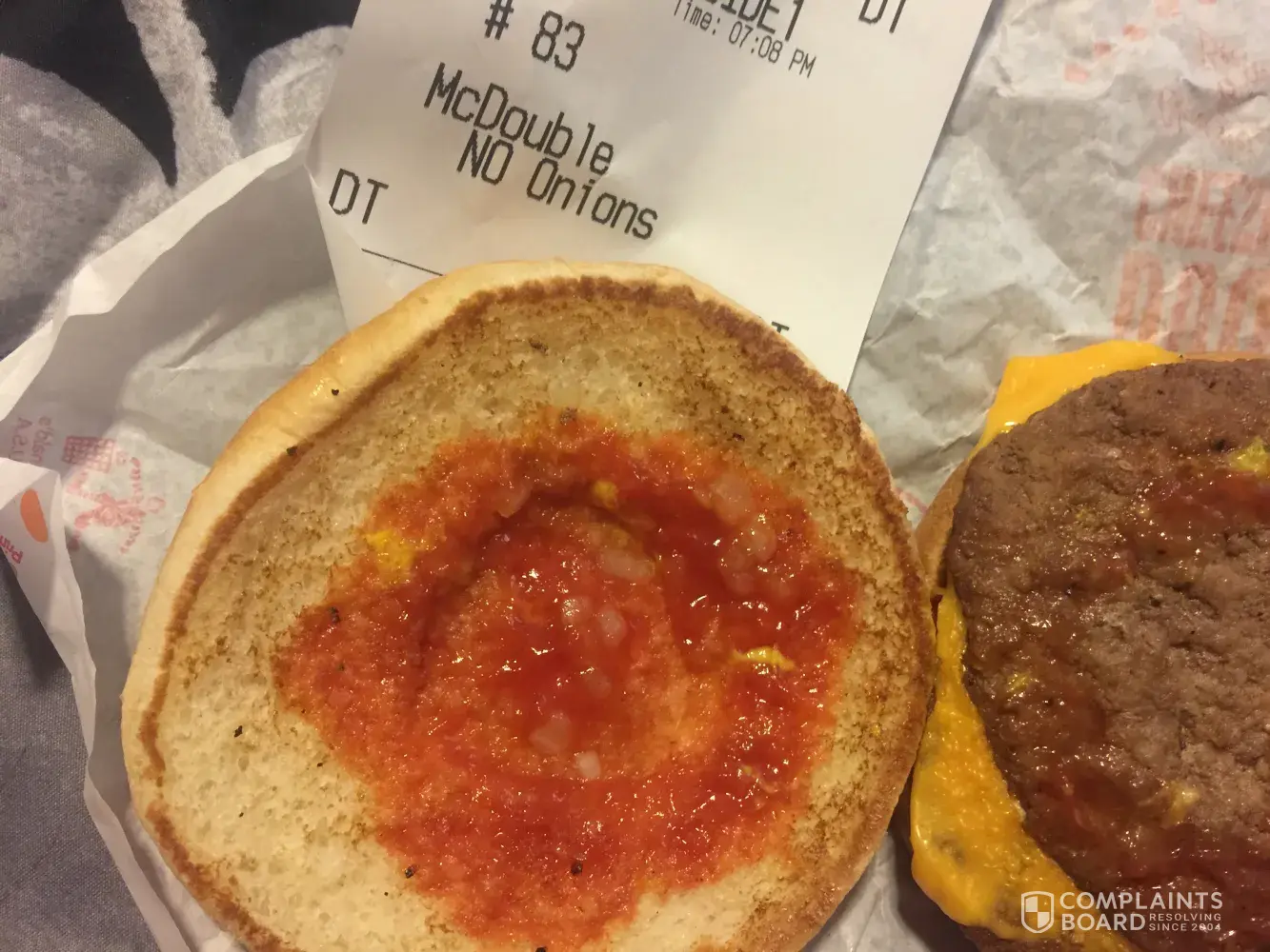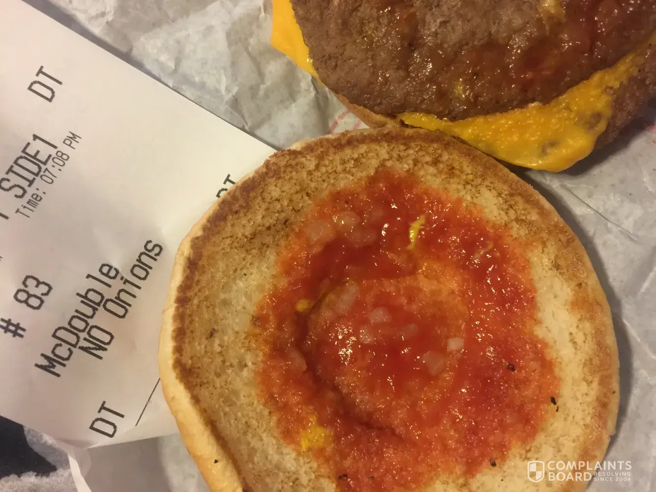 Of the burger with the onions clearly on the burger. The burger wrapper even has a no onions receipt attached to it.