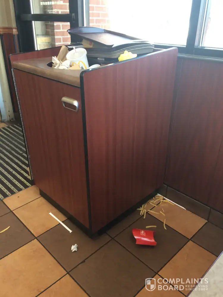 I was at the mcdonald's today at about 6:37(pm) and i noticed as i walked in how filthy the store was tables, soda machines, no tea, there was food all over the floors so i decided to ask for a manager and the lady that i asked said i am the manager, how can i help you (was texting on her phone) i said everytime i come in here your restaurant is very filthy, as i am commenting to her she has two indivduals standing by the fry machine and all the manger says i'm sorry and i said you need to have more personnel to help you and she said well as you can see everyone is busy and i said no you have teo young ladies just standing around and she well i' sorry this has happened i said ok well i am going to complain about this and she said well do you speak spanish i said yes well let me tell you in spanish i'm sorry, as i was sitting down the lady by the fry machine made a comment and said "well if she doesn't like it why doesn't she leave" i could have been rude but i decided to take control of myself so as we were eating they all kept making faces and tallking about us then one individual decided to start cleaning but with a horrible attitude and as he would pass by us he had an ugly stare but not once did he bother to say let me clean your area and the other manger that was their just kept starring to our are so we decided to pack our food and leave since it got very uncomfortable.
