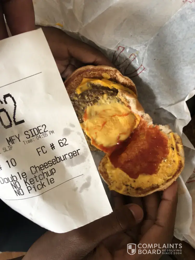 I made the order on the machine made sure it was correct before making the purchase. I got my order got home and it was not right. The special order slip and receipt states that I wanted it without ketchup and without pickles. I immediately called the store and told the manager what happen. And that this isn't the first time this has happened. She was rude and got loud. She told me to bring it up to the store. Once I got to the store standing there waiting for her to address me. She finally said after waiting 10 minutes what can I do for you. I put the bag onto the counter and said that you know I was the one that called and complained and you seen me waiting here at the counter. She threw my bag towards me and told me to call the police to get my money back. That she i not giving me back my money. I asked her why she said because I need to come to her correct. And she walked away standing there. I couldn't believe it. I have a video of my experience and almost went to jail smh. All because she refused to give me my money back. After all the mess that went down I got my refund oh without giving me a hard time and a lesson. If McDonald's doesn't make your order right. If you want a refund you have to be nice. What a valuable lesson I learned today. I want something done about this!