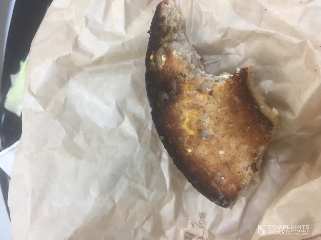 Ok I noticed my blt was on a burnt bagel the manger took a look at it n said it's fine the toaster always does it like this. I said I did not ask for it toasted. He handed it back to me after breaking it apart as it was not cut n said it's fine. I was so upset I threw it out drank my tea n left. The staff said the manager on duty is from sherway n they don't know him. Well he needs some serious customer service education. I will not go to that location again ever Lakeshore road east mississauga 585D