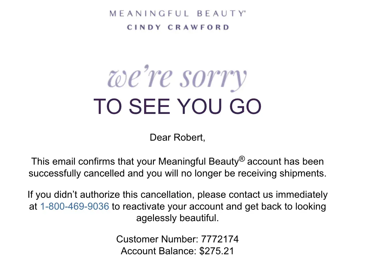 Meaningful Beauty Cancelled unwanted subscription