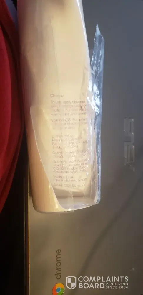product defective packaging. after opening cleanser and using for a few days I noticed the bottle almost empty. Ouch Leaking from rip in bottom of bottle. Guessing they expected this to happen since the whole bottle was wrapped in plastic wrap.