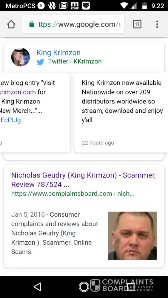 King Krimzon has never scammed anyone and you guys are putting bad publicity on his name, please remove this fake scammer alert under king Krimzon because Nicholas Guedry is not associated with rap group king Krimzon and you have it as his rap name which is not associated with king Krimzon what so ever, None of these Scams ever happened with the King...