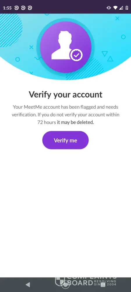 I e-mailed MeetMe Support and they manually verified my account and asked me to sign in again. I did so (using the desktop website) and guess what? Same "Verify your account - Download MeetMe" message. I let them know it's asking to verify again and they manually verified my account a second time. I went straight into the app and deleted my account ASAP.