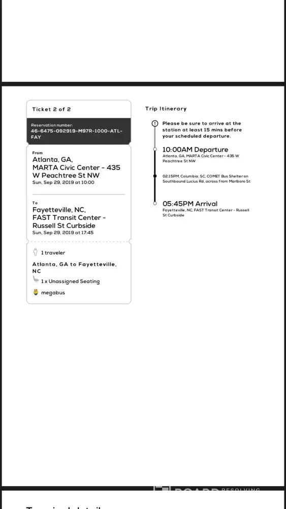 From Alanta Ga to Fayetteville NC. Ticket # [protected]-M97R-1000-atl-fay
