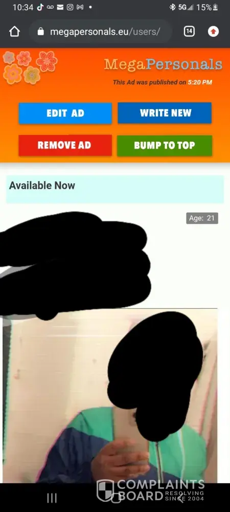 MegaPersonals.com Falsely flagged account haven’t responded in months; scammers using photos