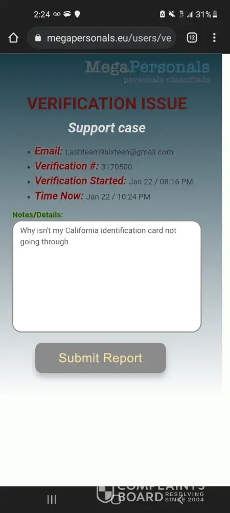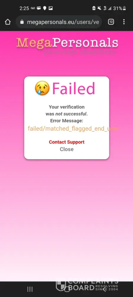 I have been blocked out of my account on megapersonals and I'm trying to register another another one, the system keep saying I should try it back in 14 days that my account verification cannot be successful but thank God I have passed that area now it just display taking too long on the screen (pending verification)