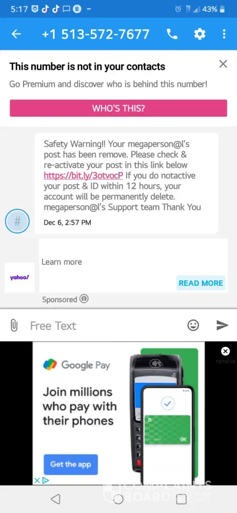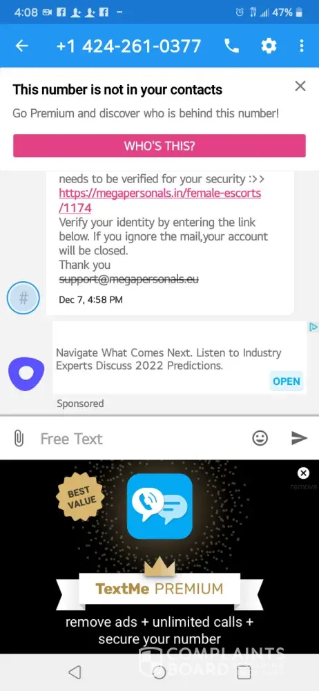 O cannot get a response to my multiple emails that I've sent also sending proof of the bogus txt msg so the issue can be taken care of