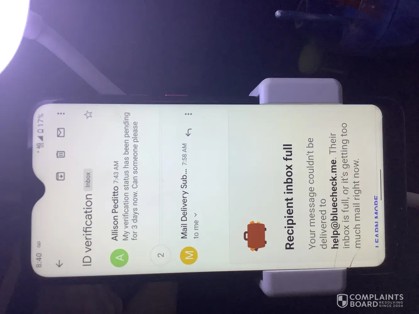 Verified customer This complaint was posted by a verified customer. Learn more