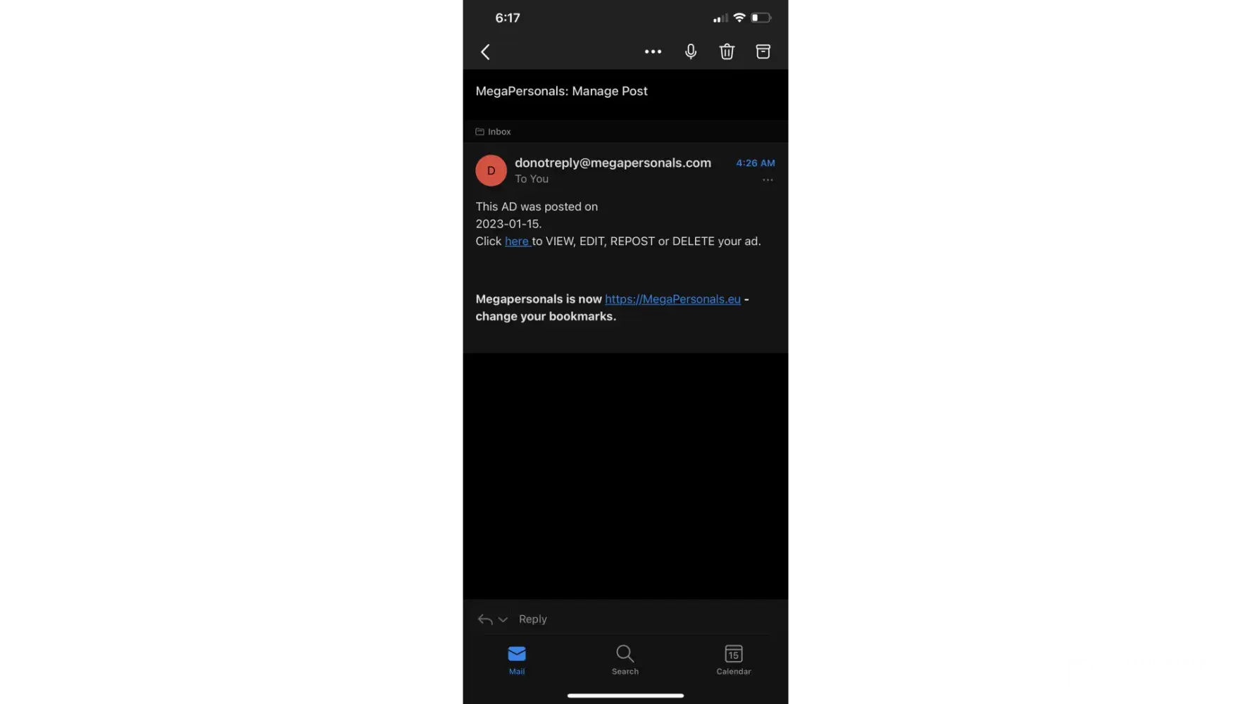 3. MegaPersonals.com emails