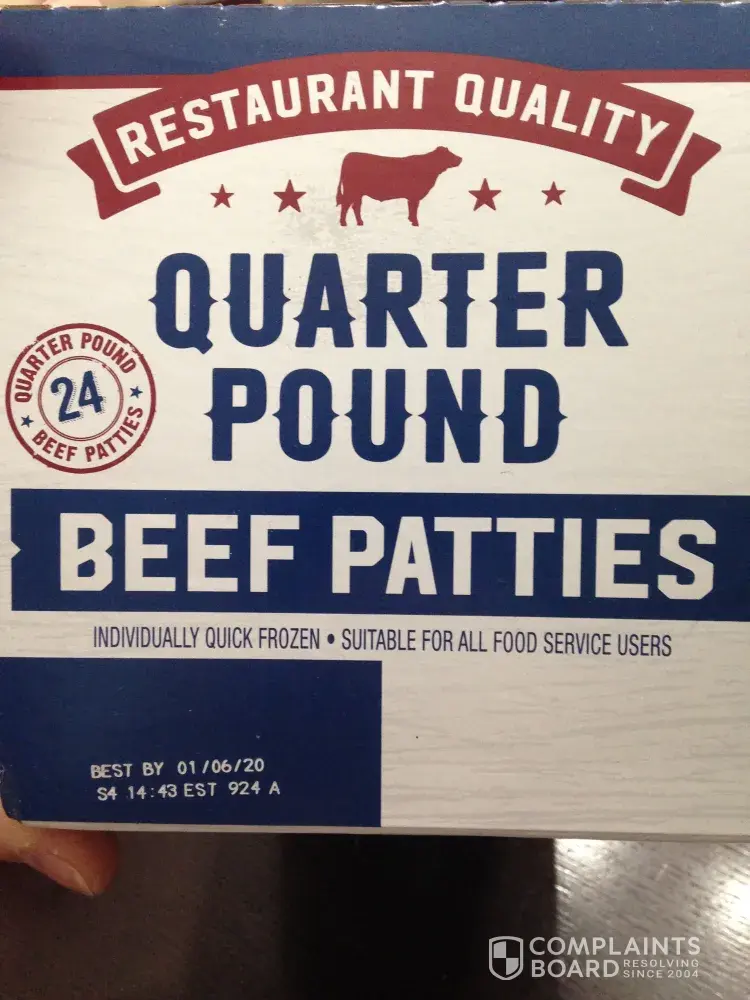 I bought a 24pk of the restaurant quality quarter pound beef patties and they fall apart while cooking on the grill. Most of them fell under the grate and the rest we pieced together. Never had this happen to us before. We have bought the boxed patties before (they seem to changed the design of the box) and never had a problem before. Pretty disappointed!