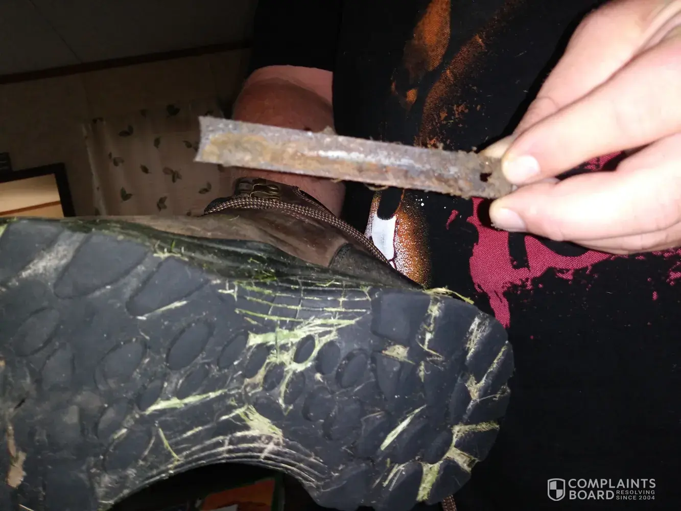 And the same issue occured the other 2 times as well i have pictures and reciepts to prove every transfer of all 3 pairs of boots. Since the metal in the bottom of the boot that i paid about. $50.00 for, has left a sharp pain on the bottom of my foot if i step on it the wrong way, or if i put too much pressure on the area when i was poked by the metal.