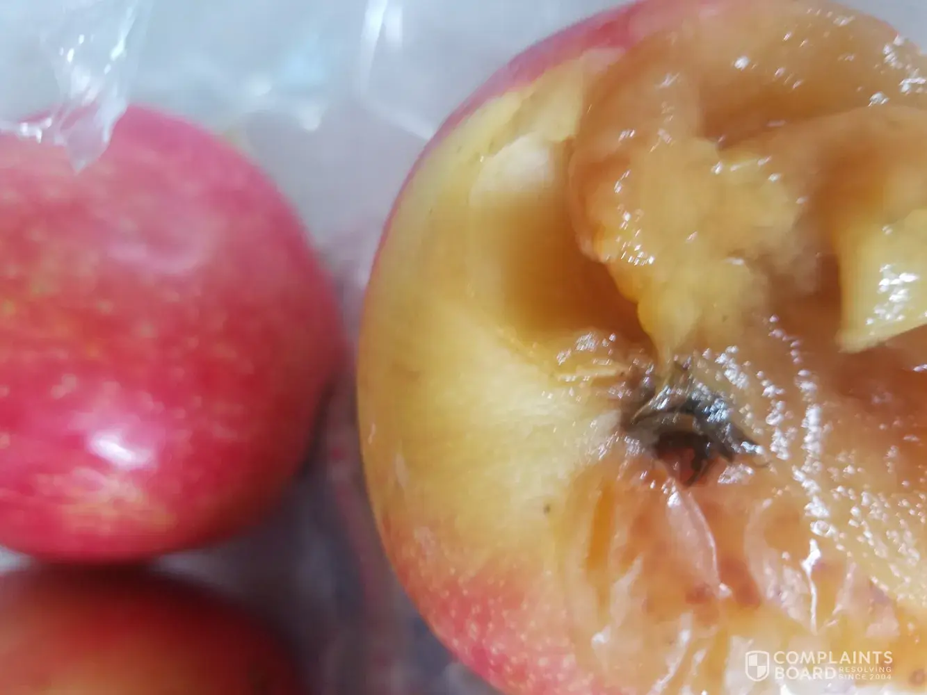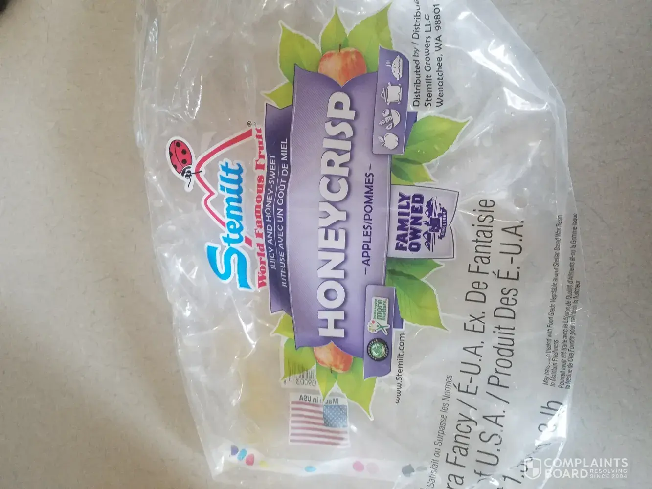 I went into meijer grocery store this morning around 10am, I purchased a bag of Honey Crisp apples by Stemilt, in which I have photos, when I went to put my apples in my basket I smelled a really yucky smell, and realized there was alot of slimy wetness on the apples, I pulled one out that was rotted and had a black looking thing on it.. Grossed me out! Don't even want apples at this point! Not to happy..