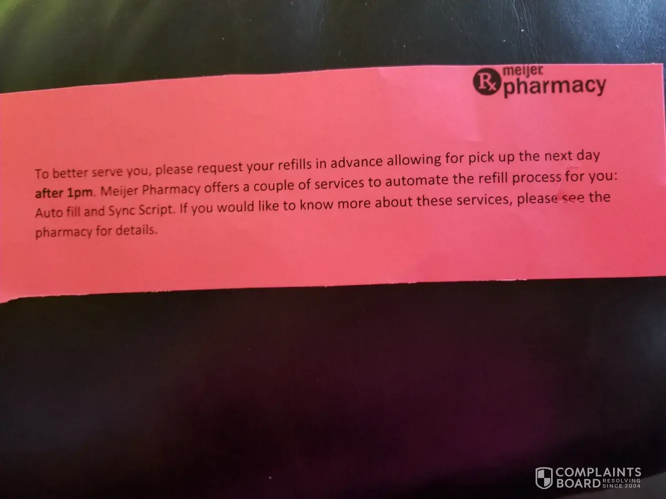 I went to Meijer Gaines Township location yesterday to pick up a prescription and waited 45 minutes for it to be ready, which was not a problem at all. When I went to pick my prescription the pharmacist said that my Blue Care Network policy was terminated on 11/30/2017, which was fine because I knew I was switching to ASR but I did not realize that would happen on 12/01/2017.