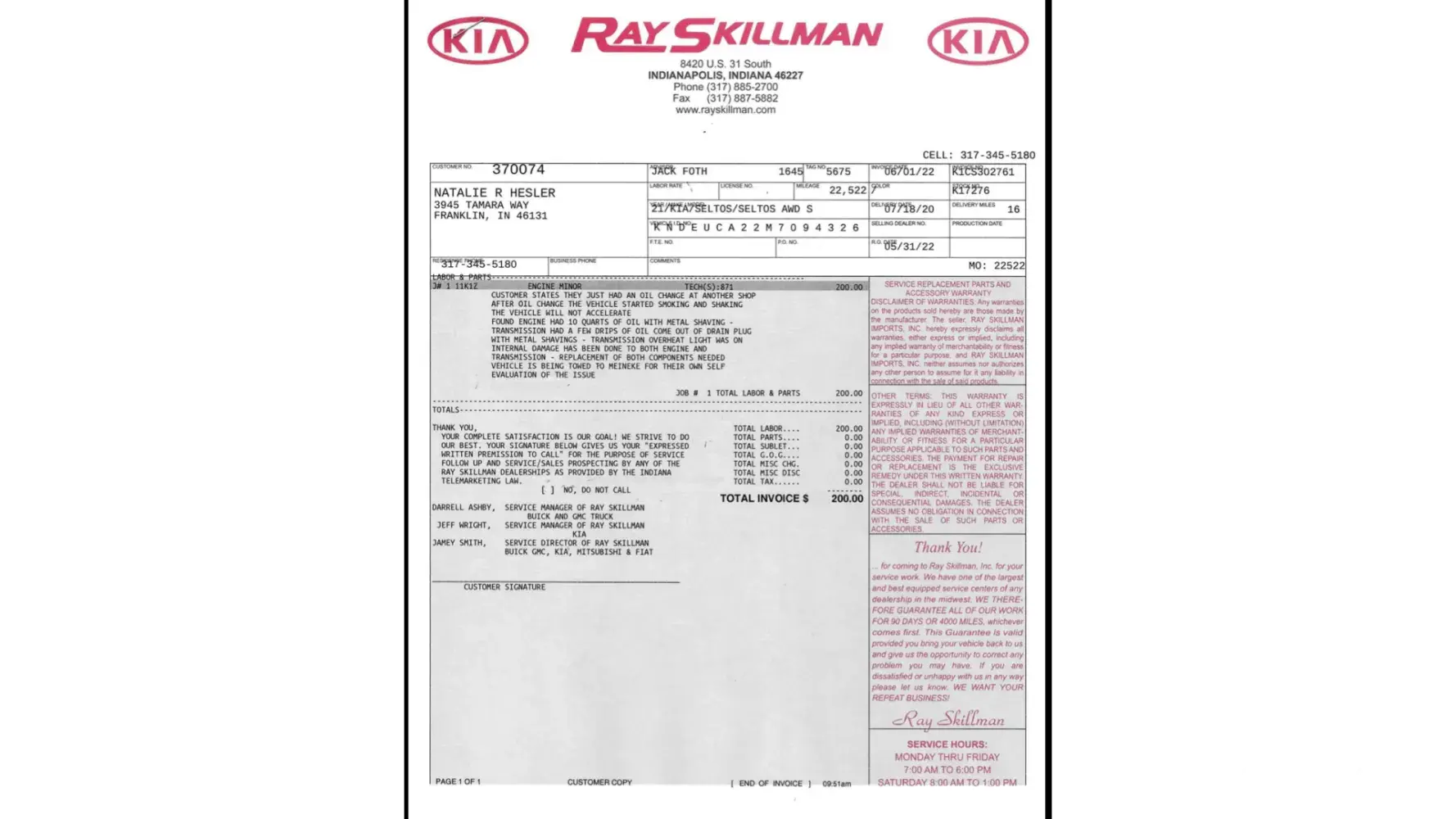 Desired outcome: Compensation for 8 quarts of gear oil to get home and postage and handling. $152 (they billed me over $7000.00