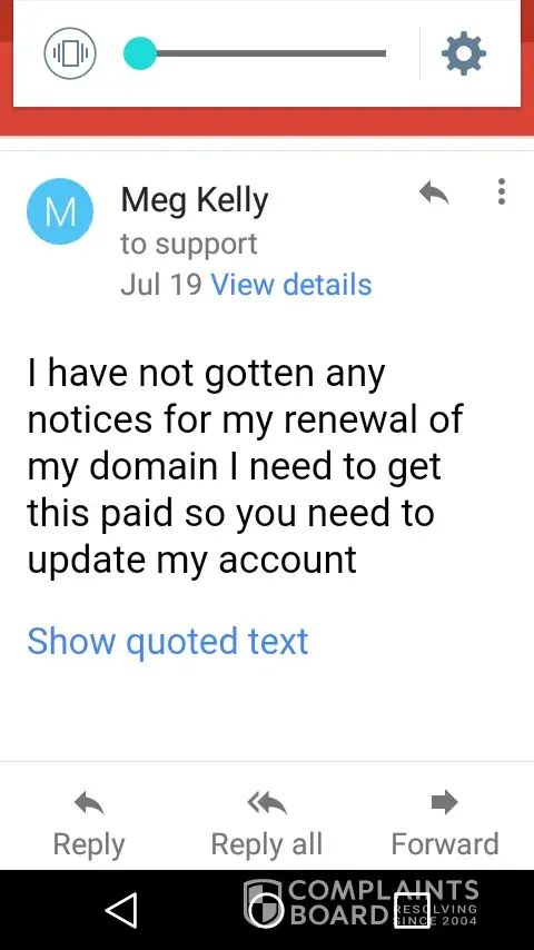 When I received my wire transfer it was in Australian dollars. So they shorted me. I have contacted them on many numerous occasions and I've not heard word one. They also were supposed to refund me the payment that they failed to make on my behalf which they did but again in Australian dollars. I suffered a tremendous loss due to this loss of my branded domain name and this settlement was peanuts compared to the overall loss of a domain name I've owned since 2005 when I created it. I don't know what to do nobody wants to contact me I'm at a loss and I'm also very worried that I still have a domain name with this terrible company