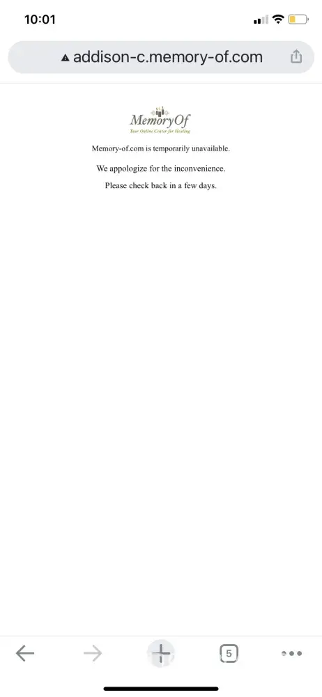 Paid for this memorial website to be hosted for life few years ago. Unfortunately from early this year, every time we try to access it...we get a message that "the site is temporarily unavailable". The memorial day of our father this year passed without us lighting the candles. Its been months since the website has bee down. Sending message to their email no one responds. Do not aggravate our grief and memories of our loved ones if your aim was take advantage of us