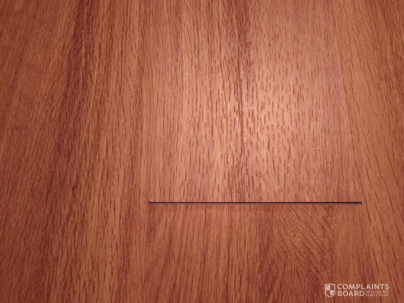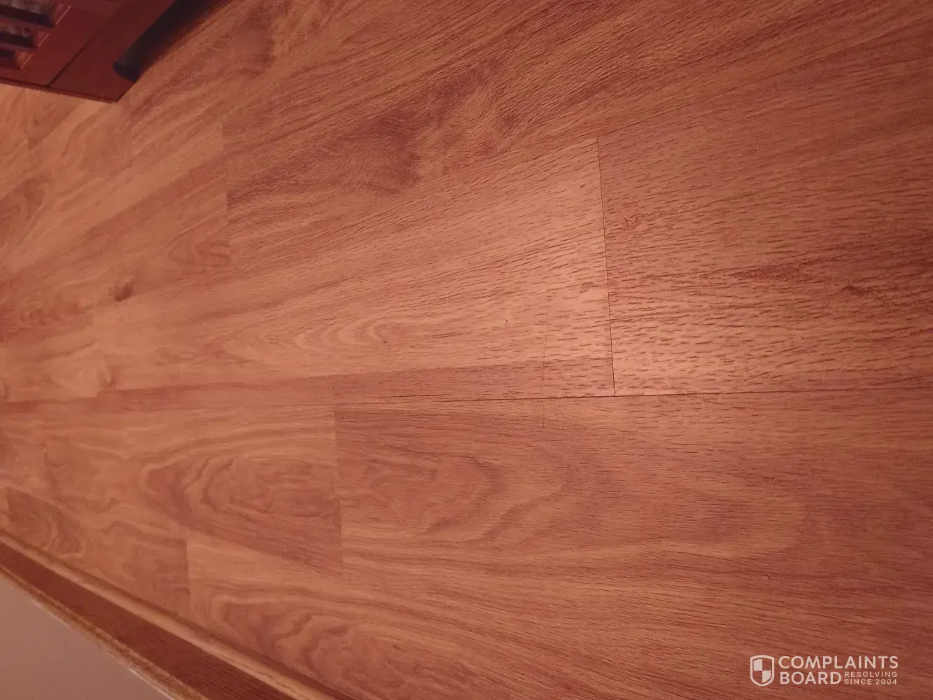 This floor was installed in November 2019. After less than a couple of months, one section had corners coming up and separating where a desk and chair was sitting. Not it is less than a year later. I will let the photos tell the story. If you look closely, you can see the separations that are only just beginning.