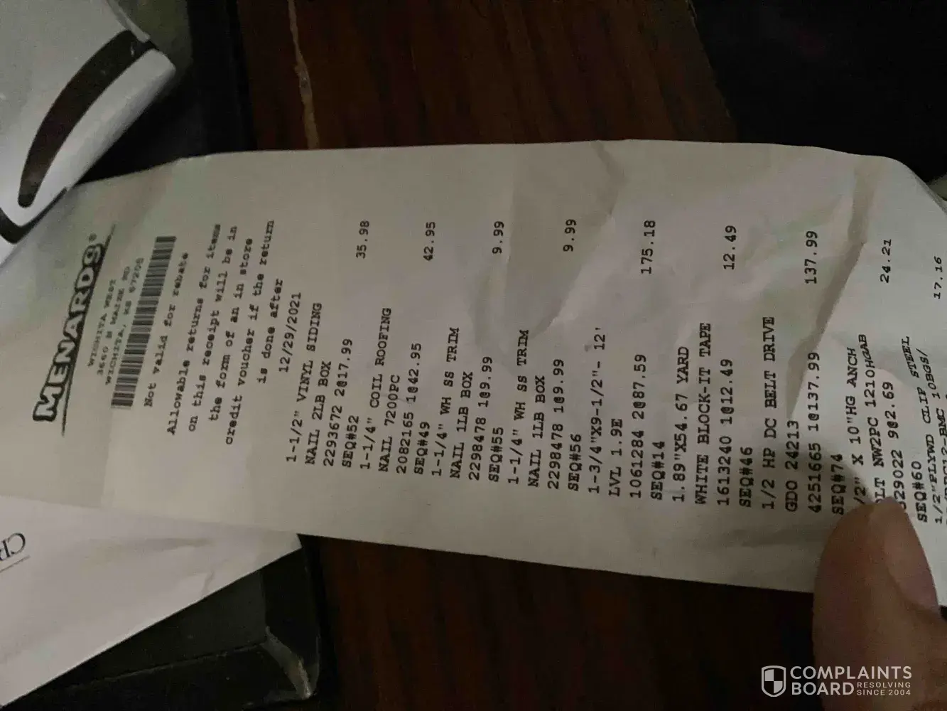 Today, I just returned over $1, 300 dollars of unused material. Some items were like the gutters. I decided to go seamless. I also returned the two walk-in doors I had ordered. I had been told by two other contractors that they have had nothing but trouble with doors from Menards.