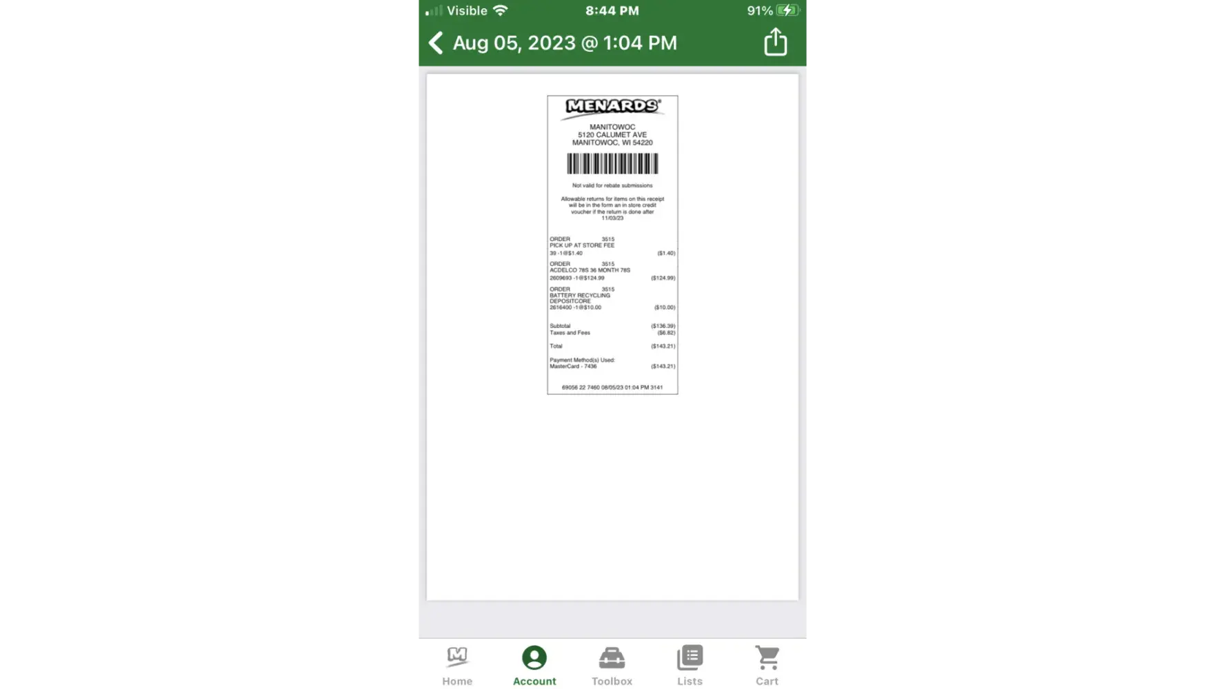 IF You visit a Menards store and pay at the register you will receive a second receipt- a Rebate Receipt. If you follow the rules, you have a decent chance of getting your %11 Rebate in 8 to 10 weeks. But, if you order and pay for your purchase online, you are supposed to get an attachment with your order confirmation email that allows you to print the Rebate Receipt, which you then mail in along with the required rebate form. I have actually done this in the past. But lately, for my last few online purchases, there was NO ATTACHMENT included with the order confirmation email. I even got out my notebook to check my mail there in case it was some sort of android email glitch. But no glitch is there. For my last purchase, I even went in to the store and was advised to go to their kiosks which are supposed to allow you to access your Menard's account, which it indeed does ( using the same credentials used on the app). But neither the kiosks in the store or the app actually lets you print the rebate receipt. You can only print the Purchase Receipt which DOES NOT have the required rebate number . For my last few purchases I have let this go, but now I am fed up with this. This last purchase is supposed to have a $30 rebate which I am not going to receive if they don't email me that attachment. And going to the store's customer service is a ridiculous waste of time. That's where I wasted far too much time after they directed me to the kiosks, only to discover that the kiosk doesn't amount to anything more than what you can do at home. Which is reprint the purchase receipt. I suspect that they knew that when they sent me to their kiosks. So it seems like a scam to me. So Saving Big oney at Menards? Good luck with that.