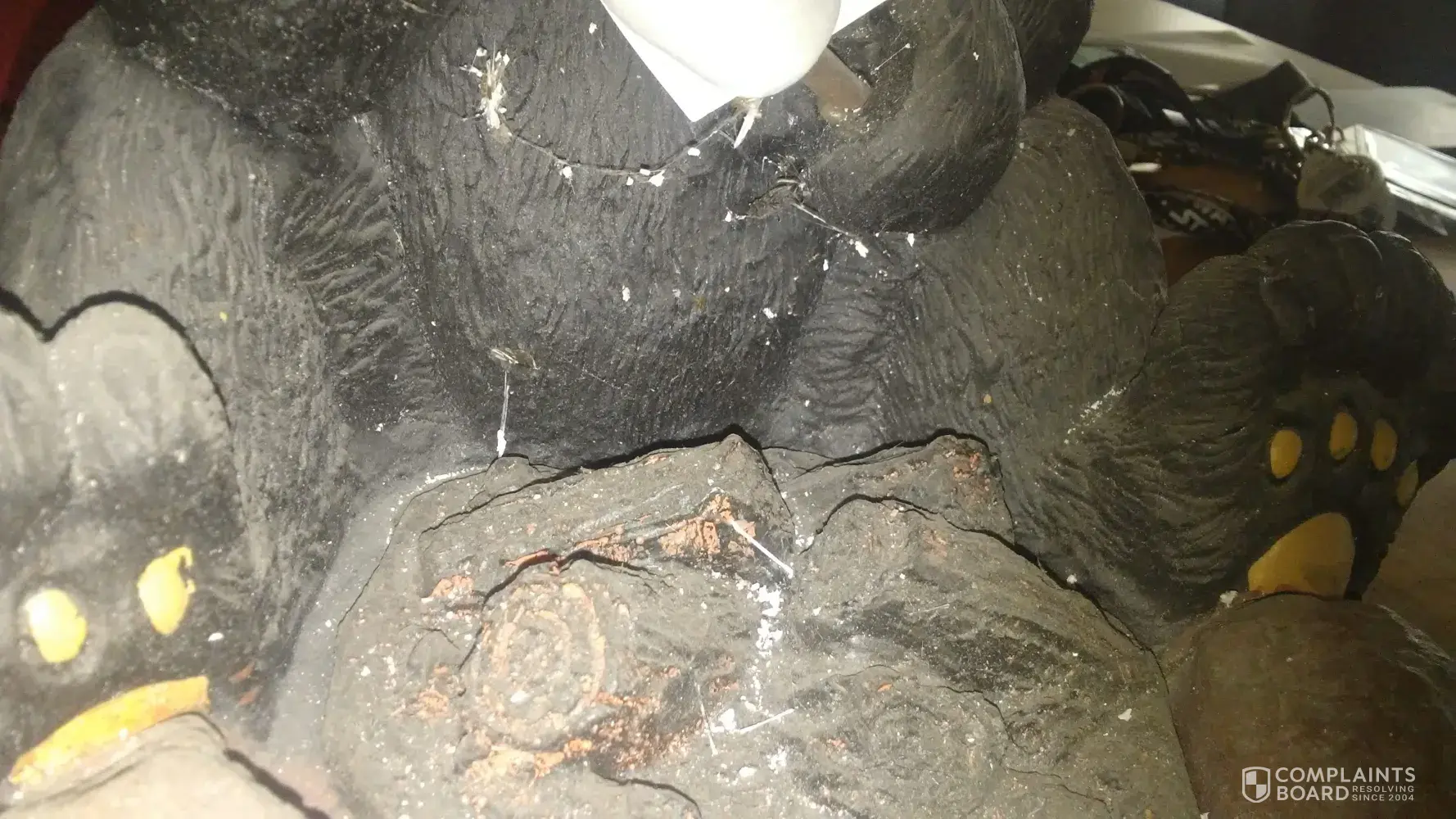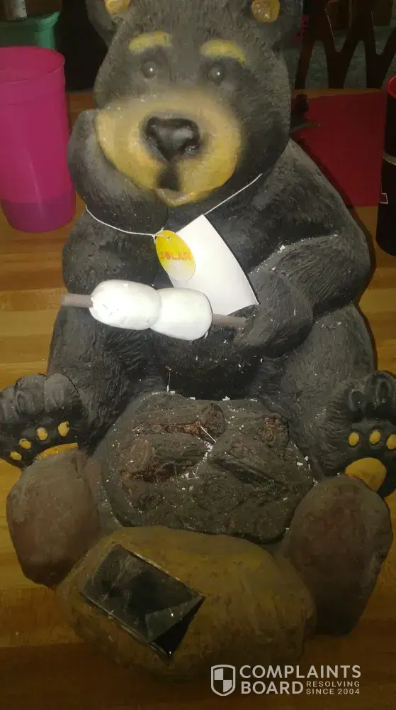 I paid good money for these 2 bears carrying marshmallows and I received them today, the box is all damaged, bears are broken, there is so many cob webs, marks n dings on the bears, I took pics i'm not a very happy customer at all. I'll like a supervisor to call me asap this is not ok, [protected] the bears was returned today at the edgewood store in lansing michigan, the manager took pics but did not try to help me at all, his name was josh leppek the only thing he offered was if I found another bear he could do same price, I would of been more happy for all the trouble it has cause for a full refund, & a in store gift card... For all the trouble, I was just at menards last week bought a microwave that did not even work... And now this?