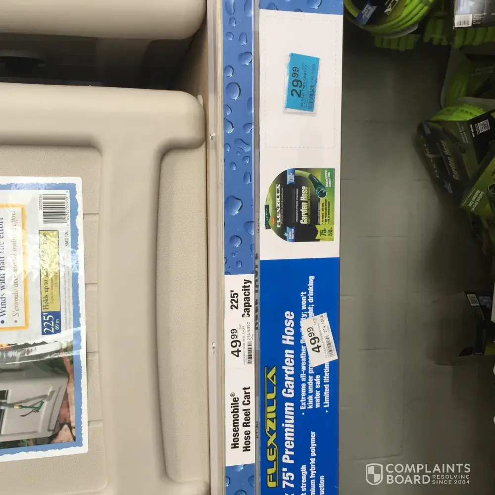 There were tags for $29.99 on each section. The 50' section and the 75' section. So I purchased the 75' hose. At the register they were $49.99. I met two managers on duty (sorry I didn't get their names) and they said they would not honer the pricing even though each section is individual.