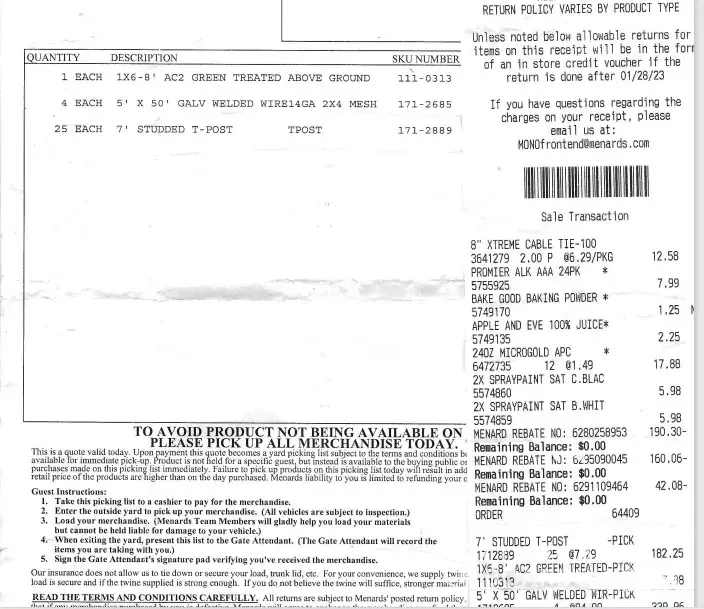 My purchase was made at the Menards store in Fairborn, Ohio on 7/22/22 at 12:11 p.m.
