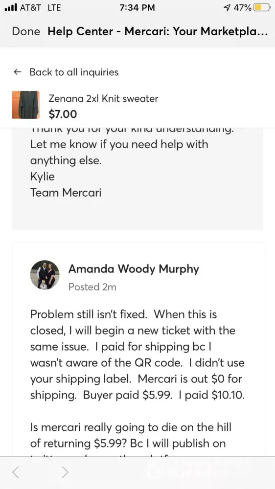 I have been selling on Mercari for a few years. Their support staff has gotten really bad lately. They provide no support to sellers! They copy and paste the same message and don't listen to your complaint. Lately, there have been more buyers that are terrible. These buyers blame the seller for USPS delivery problems, high prices, and give low ratings. These problems are beyond the seller's control. Mercari support do not support the sellers in removing these bad unreasonable reviews, including damaging reviews. There are also "Karens" that have become a growing problem as buyers such as Karen Geisler from Matthews, NC and Jill Irvin from Newnan, GA. I won't be selling here anymore due to lack of Mercari support. I recommend selling on other selling platforms that provide more support for their sellers. Hope Mercari goes downhill.